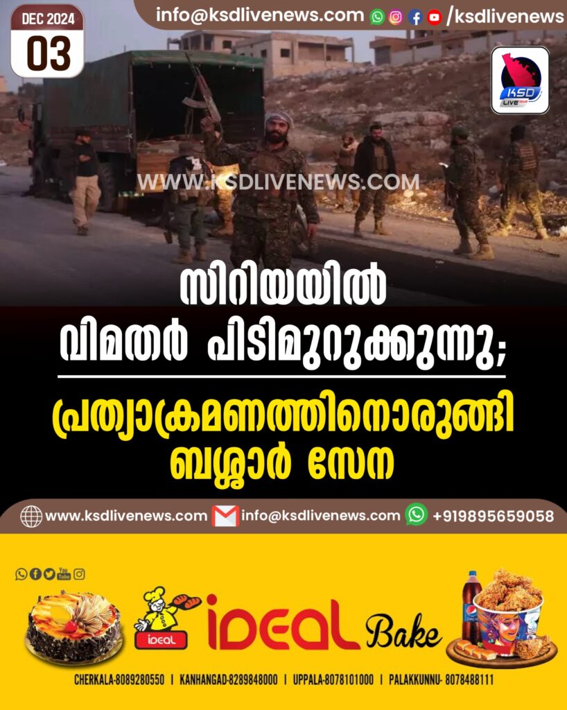 സിറിയയില് വിമതര് പിടിമുറുക്കുന്നു; പ്രത്യാക്രമണത്തിനൊരുങ്ങി ബശ്ശാര് സേന