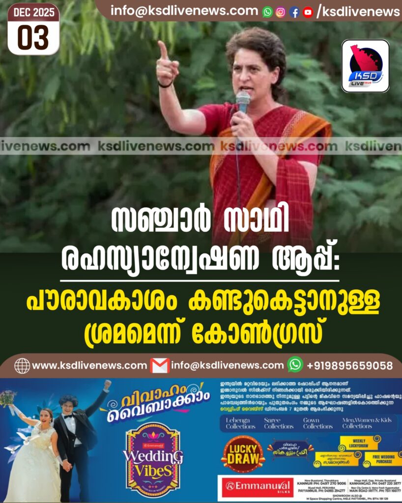 സഞ്ചാര് സാഥി രഹസ്യാന്വേഷണ ആപ്പ്: പൗരാവകാശം കണ്ടുകെട്ടാനുള്ള ശ്രമമെന്ന് കോൺഗ്രസ്