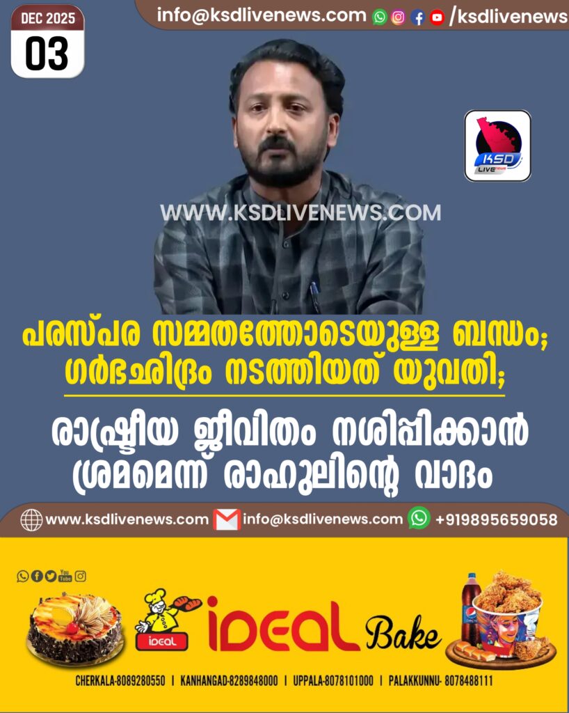 പരസ്പര സമ്മതത്തോടെയുള്ള ബന്ധം; ഗർഭഛിദ്രം നടത്തിയത് യുവതി’: രാഷ്ട്രീയ ജീവിതം നശിപ്പിക്കാൻ ശ്രമമെന്ന് രാഹുലിന്റെ വാദം