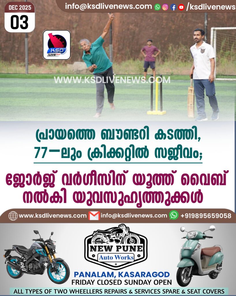 പ്രായത്തെ ബൗണ്ടറി കടത്തി, 77–ലും ക്രിക്കറ്റിൽ സജീവം; ജോർജ് വർഗീസിന് യൂത്ത് വൈബ് നൽകി യുവസുഹൃത്തുക്കൾ