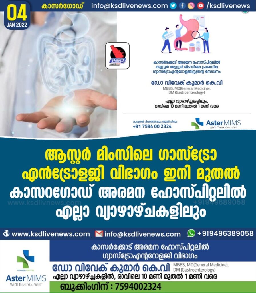 ആസ്റർ മിംസിലെ ഗാസ്ട്രോ എൻട്രോളജി വിഭാഗം ഇനി മുതൽ കാസറഗോഡ് അരമന ഹോസ്പിറ്റലിൽ എല്ലാ വ്യാഴഴ്ചകളിലും