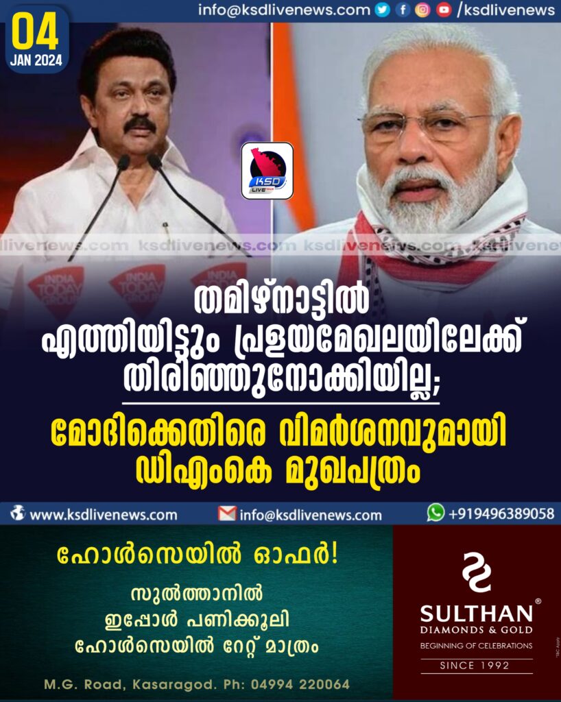 തമിഴ്നാട്ടിൽ എത്തിയിട്ടും പ്രളയമേഖലയിലേക്ക് തിരിഞ്ഞുനോക്കിയില്ല; മോദിക്കെതിരെ വിമർശനവുമായി ഡിഎംകെ മുഖപത്രം