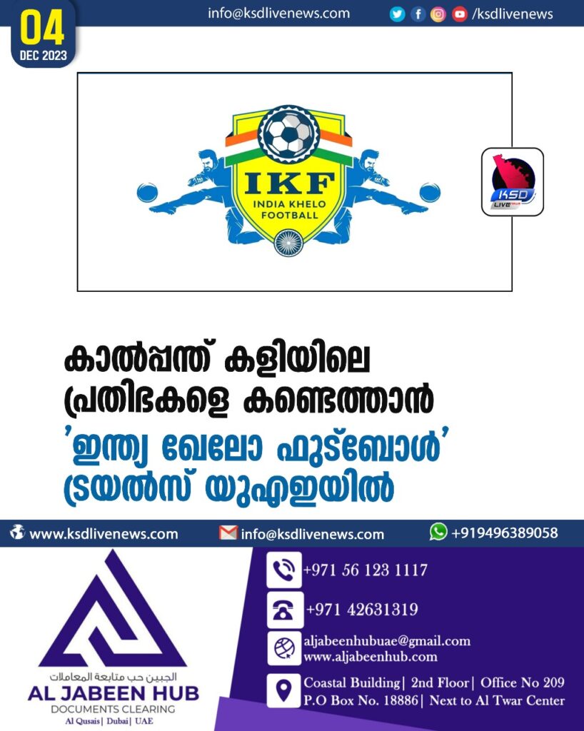 കാല്പ്പന്ത് കളിയിലെ പ്രതിഭകളെ കണ്ടെത്താന് ‘ഇന്ത്യ ഖേലോ ഫുട്ബോള്’ ട്രയല്സ് യുഎഇയില്