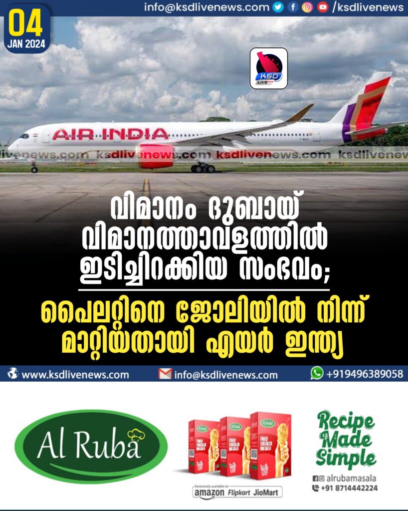 വിമാനം ദുബായ് വിമാനത്താവളത്തില് ഇടിച്ചിറക്കിയ സംഭവം; പൈലറ്റിനെ ജോലിയില് നിന്ന് മാറ്റിയതായി എയര് ഇന്ത്യ