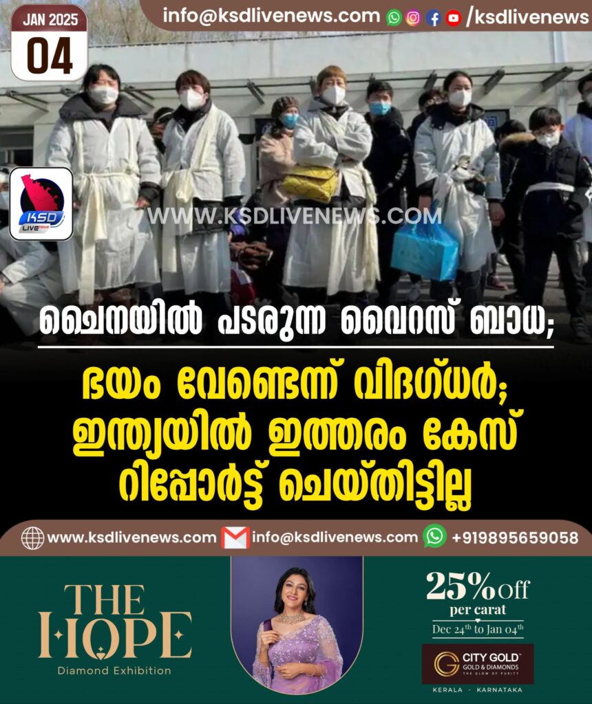 ചൈനയിൽ പടരുന്ന വൈറസ് ബാധ; ഭയം വേണ്ടെന്ന് വിദഗ്ധർ; ഇന്ത്യയിൽ ഇത്തരം കേസ് റിപ്പോർട്ട് ചെയ്തിട്ടില്ല
