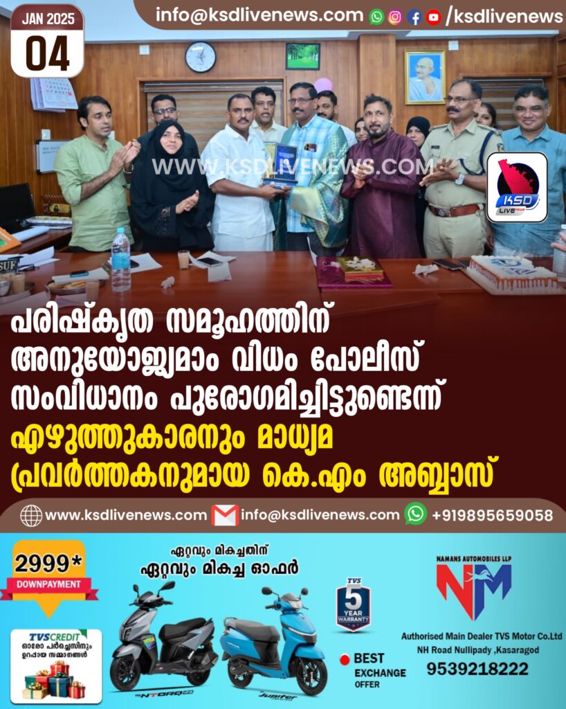 പരിഷ്കൃത സമൂഹത്തിന് അനുയോജ്യമാം വിധം പോലീസ് സംവിധാനം പുരോഗമിച്ചിട്ടുണ്ടെന്ന് എഴുത്തുകാരനും മാധ്യമ പ്രവർത്തകനുമായ കെ എം അബ്ബാസ്