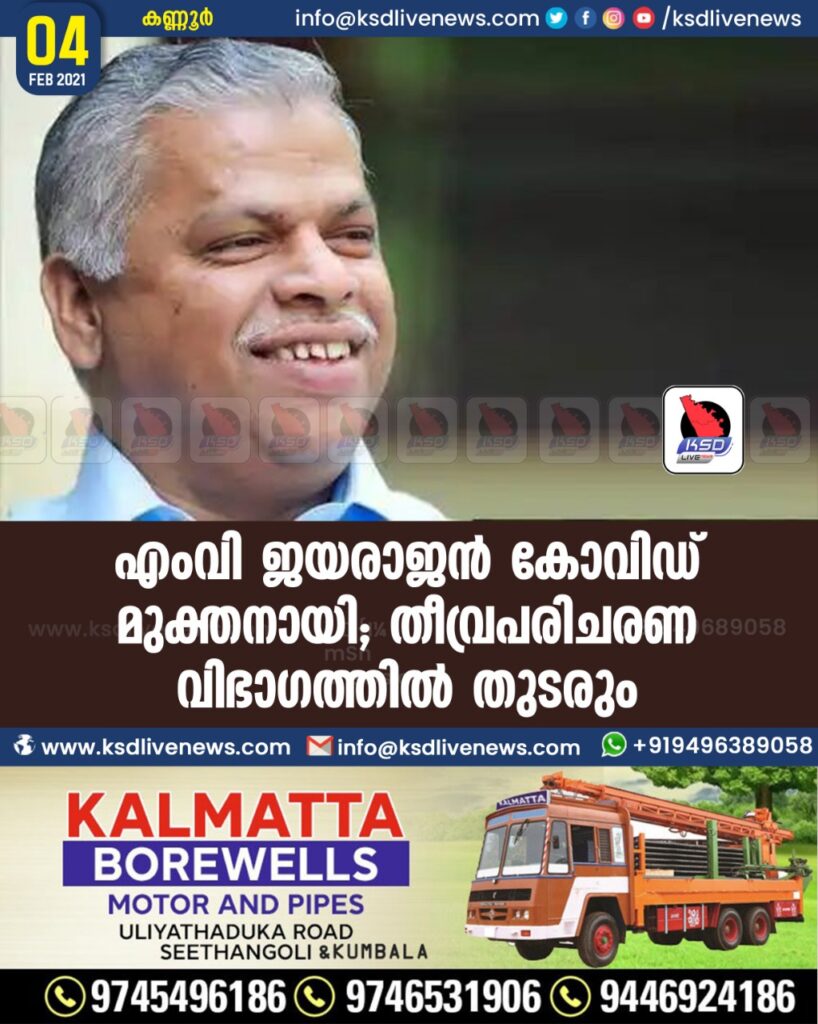 എംവി ജയരാജൻ കോവിഡ് മുക്തനായി ; തീവ്രപരിചരണ വിഭാഗത്തിൽ തുടരും