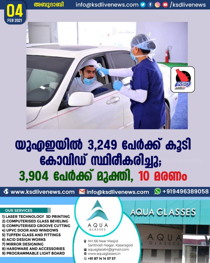 യുഎഇയില് 3,249 പേര്ക്ക് കൂടി കോവിഡ് സ്ഥിരീകരിച്ചു; 3,904 പേർക്ക് മുക്തി 10 മരണം…