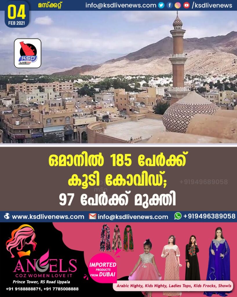 ഒമാനില് 185 പേര്ക്ക് കൂടി കോവിഡ്; 97 പേർക്ക് മുക്തി