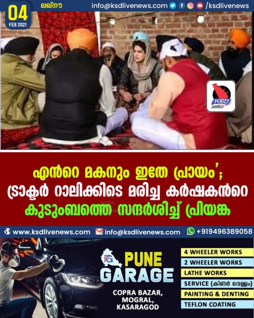 എന്റെ മകനും ഇതേ പ്രായം’;ട്രാക്ടര് റാലിക്കിടെ മരിച്ച കര്ഷകന്റെ കുടുംബത്തെ സന്ദര്ശിച്ച് പ്രിയങ്ക