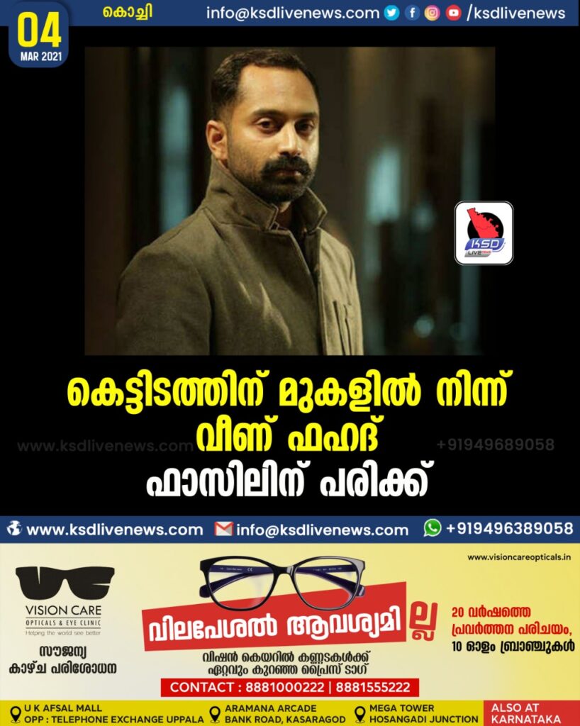 കെട്ടിടത്തിന് മുകളില് നിന്ന് വീണ് ഫഹദ് ഫാസിലിന് പരിക്ക്