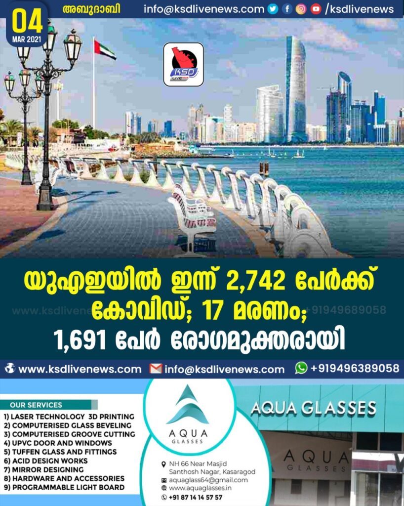 യുഎഇയില്‍ ഇന്ന് 2,742 പേർക്ക് കോവിഡ്; 17 മരണം; 1,691 പേർ രോഗമുക്തരായി