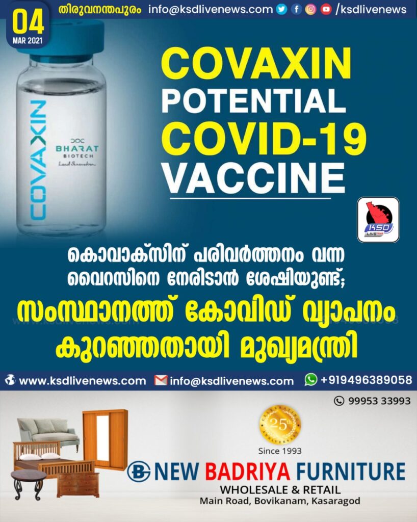 കൊവാക്സിന് പരിവർത്തനം വന്ന വൈറസിനെ നേരിടാൻ ശേഷിയുണ്ട് ‘ ; സംസ്ഥാനത്ത് കൊവിഡ് വ്യാപനം കുറഞ്ഞതായി മുഖ്യമന്ത്രി