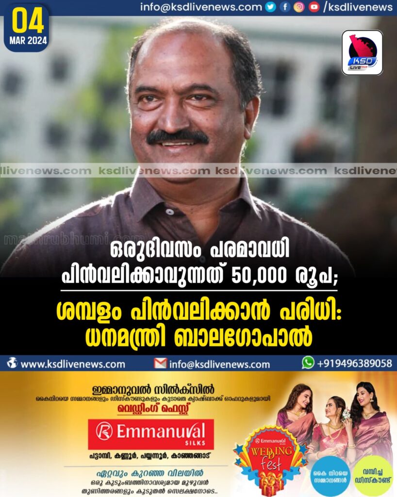 ഒരുദിവസം പരമാവധി പിന്വലിക്കാവുന്നത് 50,000 രൂപ; ശമ്പളം പിന്വലിക്കാന് പരിധി- ധനമന്ത്രി ബാലഗോപാല്