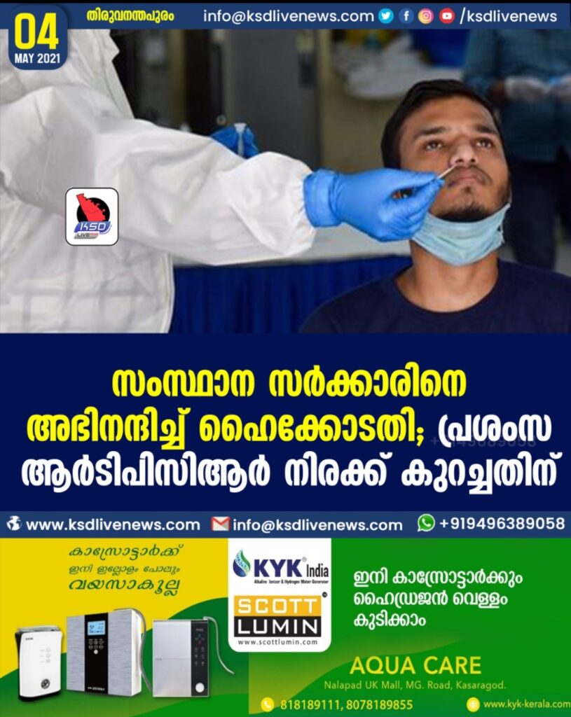സംസ്ഥാന സര്‍ക്കാരിനെ അഭിനന്ദിച്ച് ഹൈക്കോടതി; പ്രശംസ ആര്‍ടിപിസിആര്‍ നിരക്ക് കുറച്ചതിന്