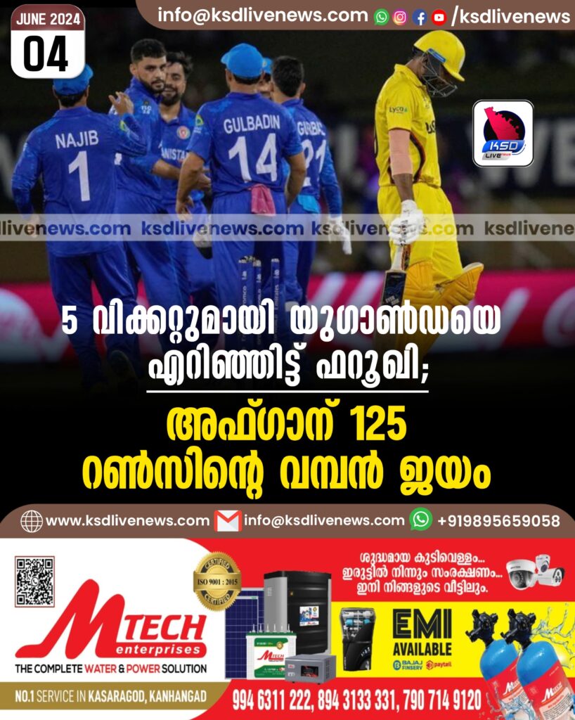 5 വിക്കറ്റുമായി യുഗാണ്ഡയെ എറിഞ്ഞിട്ട് ഫറൂഖി; അഫ്ഗാന് 125 റണ്സിന്റെ വമ്പന് ജയം