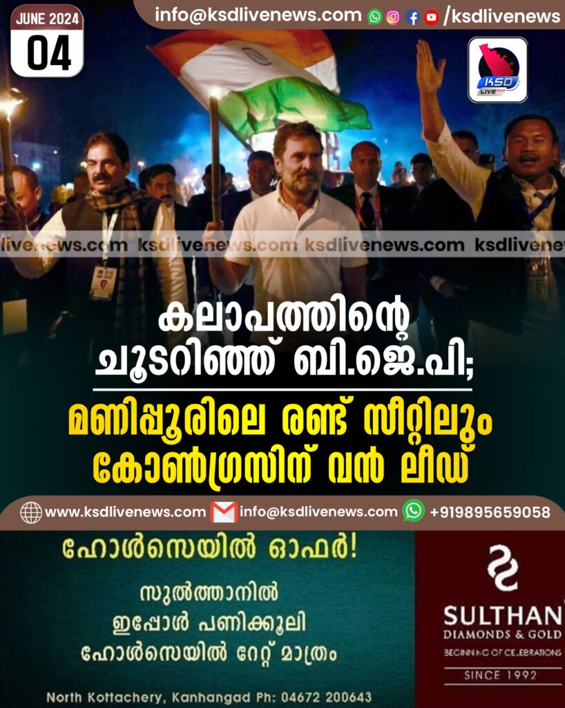 കലാപത്തിന്റെ ചൂടറിഞ്ഞ് ബിജെപി; മണിപ്പൂരിലെ രണ്ട് സീറ്റിലും കോണ്ഗ്രസിന് വന് ലീഡ്