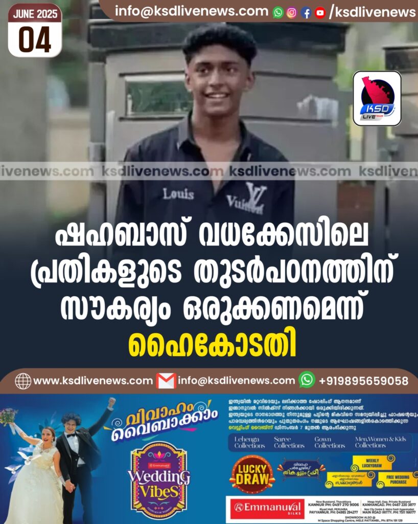 ഷഹബാസ് വധക്കേസിലെ പ്രതികളുടെ തുടര്‍പഠനത്തിന് സൗകര്യം ഒരുക്കണമെന്ന് ഹൈകോടതി