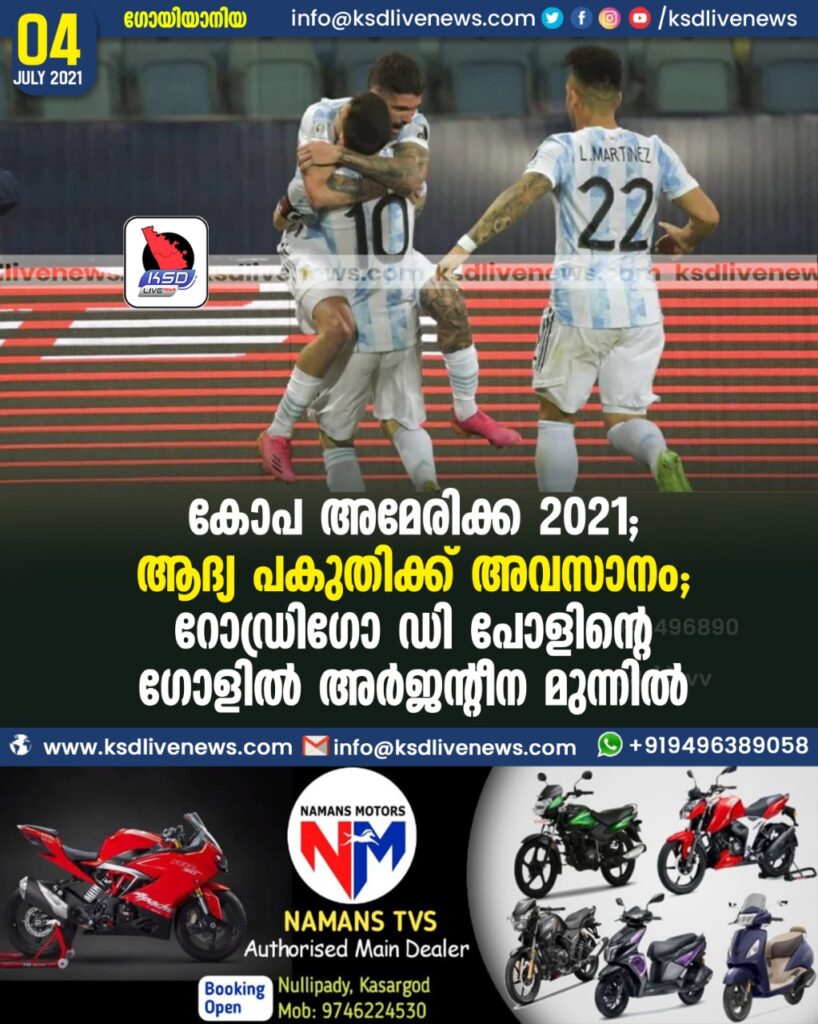 ആദ്യ പകുതിക്ക് അവസാനം; റോഡ്രിഗോ ഡി പോളിന്റെ ഗോളില്‍ അര്‍ജന്റീന മുന്നില്‍