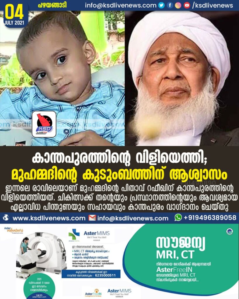 കാന്തപുരത്തിന്റെ വിളിയെത്തി; മുഹമ്മദിന്റെ കുടുംബത്തിന് ആശ്വാസം