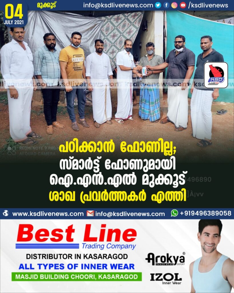 പഠിക്കാൻ ഫോണില്ല , സ്മാർട്ട് ഫോണുമായി ഐ.എൻ.എൽ മുക്കൂട് ശാഖ പ്രവർത്തകർ എത്തി