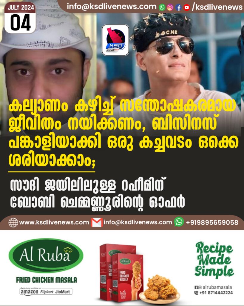 കല്യാണം കഴിച്ച് സന്തോഷകരമായ ജീവിതം നയിക്കണം, ബിസിനസ് പങ്കാളിയാക്കി ഒരു കച്ചവടം ഒക്കെ ശരിയാക്കാം’ സൗദി ജയിലിലുള്ള റഹീമിന് ബോബി ചെമ്മണ്ണൂരിന്റെ ഓഫർ