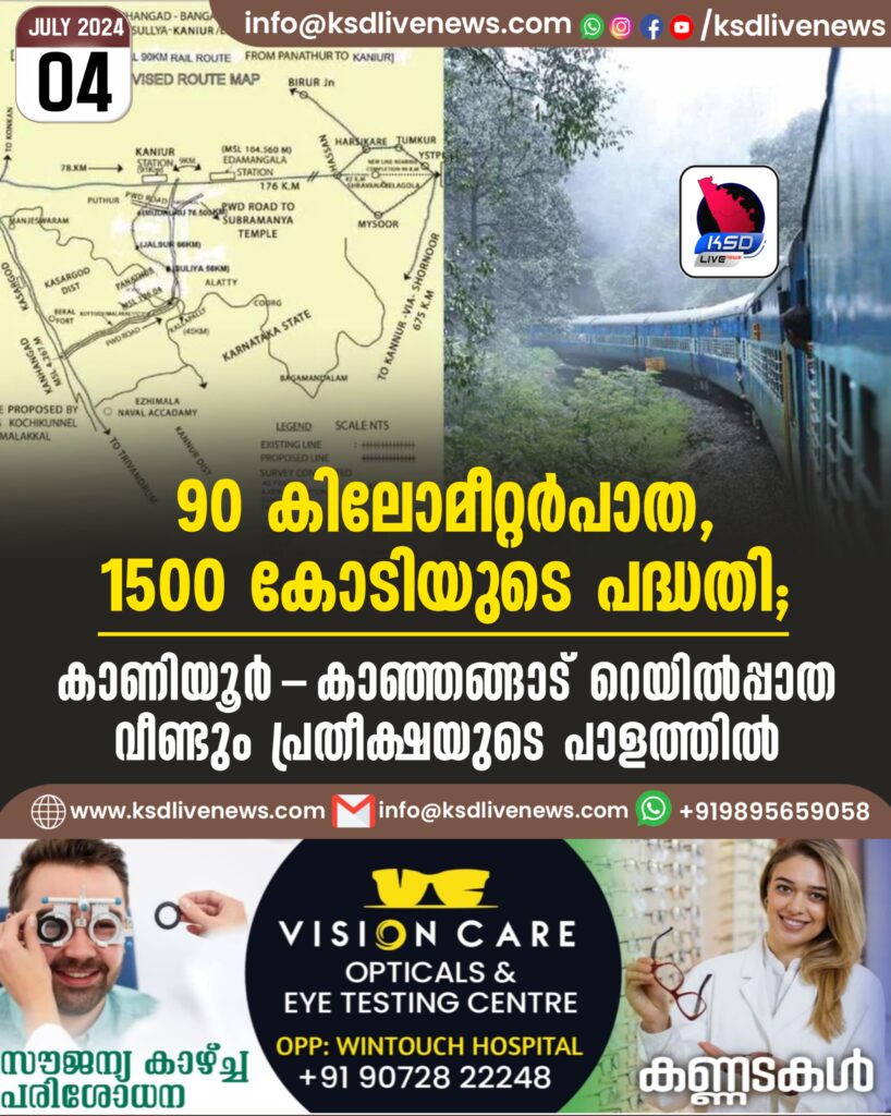 90 കിലോമീറ്റർപാത, 1500 കോടിയുടെ പദ്ധതി; കാണിയൂർ-കാഞ്ഞങ്ങാട് റെയിൽപ്പാത വീണ്ടും പ്രതീക്ഷയുടെ പാളത്തിൽ