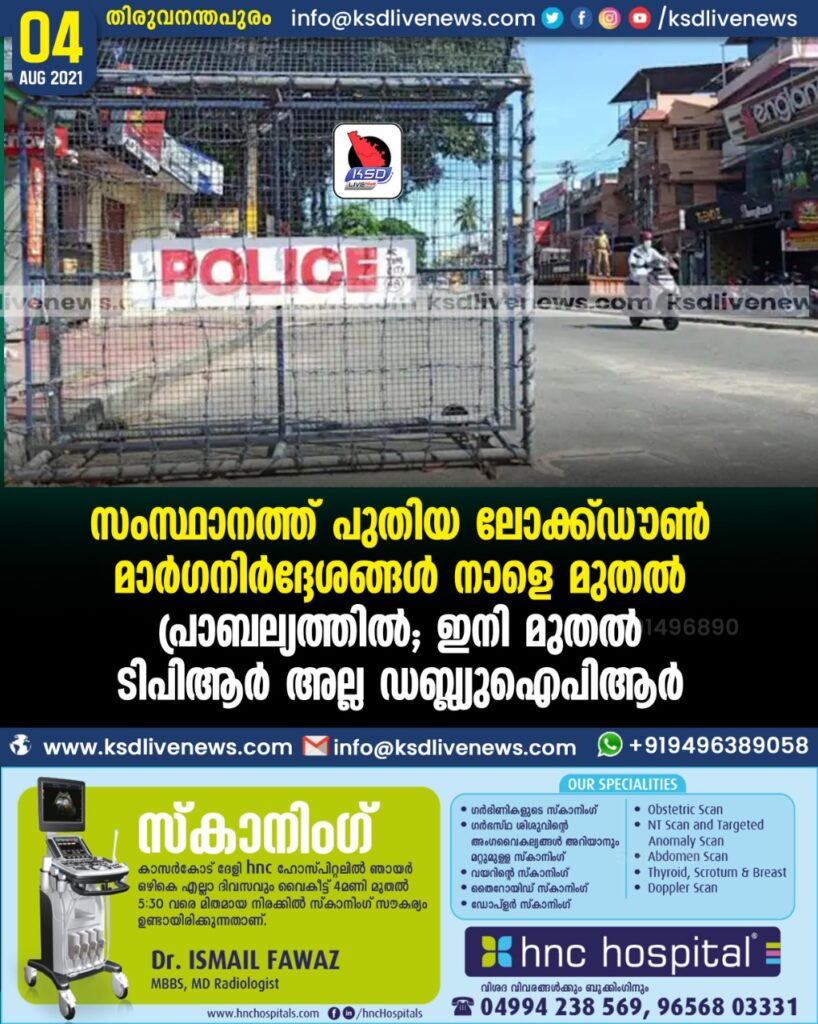 സംസ്ഥാനത്ത് പുതിയ ലോക്ക്ഡൗൺ മാർഗനിർദ്ദേശങ്ങൾ നാളെ മുതൽ പ്രാബല്യത്തിൽ; ഇനി മുതൽ ടിപിആർ അല്ല ഡബ്ല്യുഐപിആർ