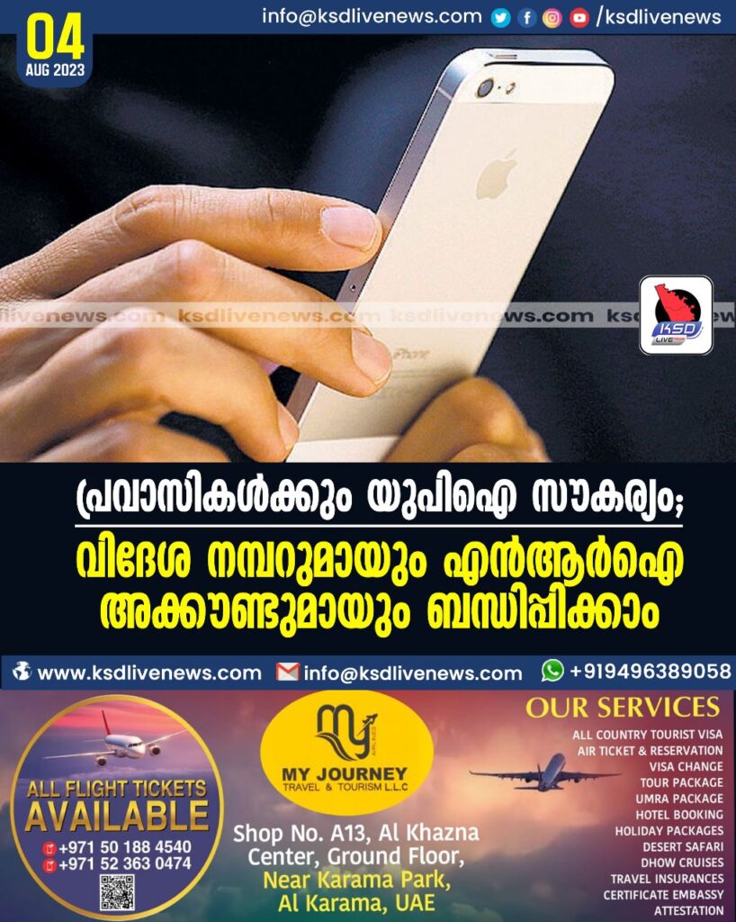 പ്രവാസികൾക്കും യുപിഐ സൗകര്യം; വിദേശ നമ്പറുമായും എൻആർഐ അക്കൗണ്ടുമായും ബന്ധിപ്പിക്കാം