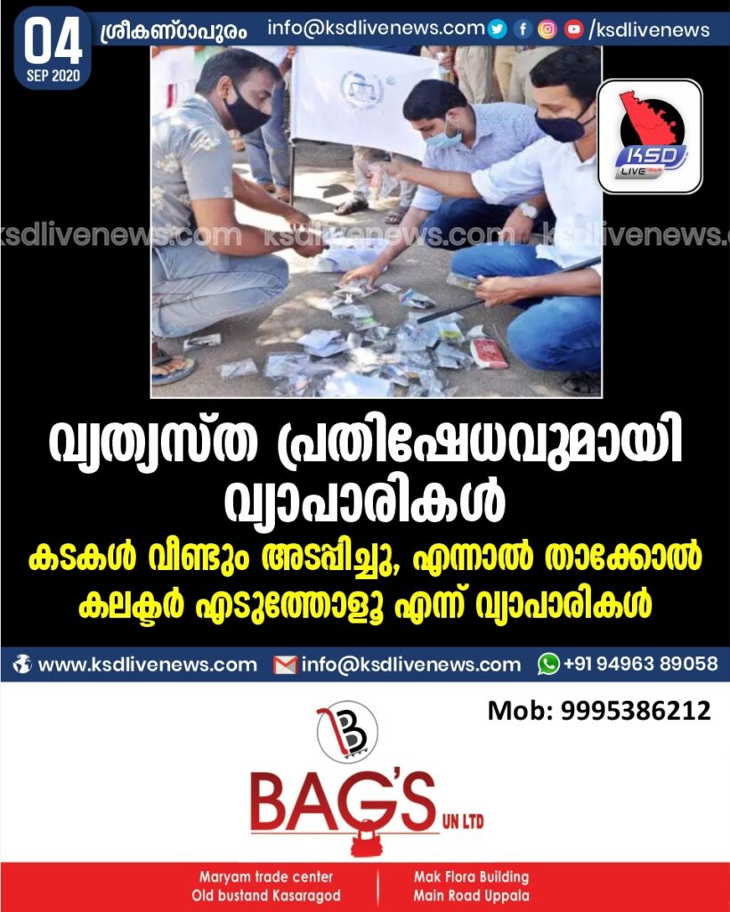 കടകൾ വീണ്ടും അടപ്പിച്ചു, എന്നാൽ താക്കോൽ കലക്ടർ എടുത്തോളൂ എന്ന് വ്യാപാരികൾ