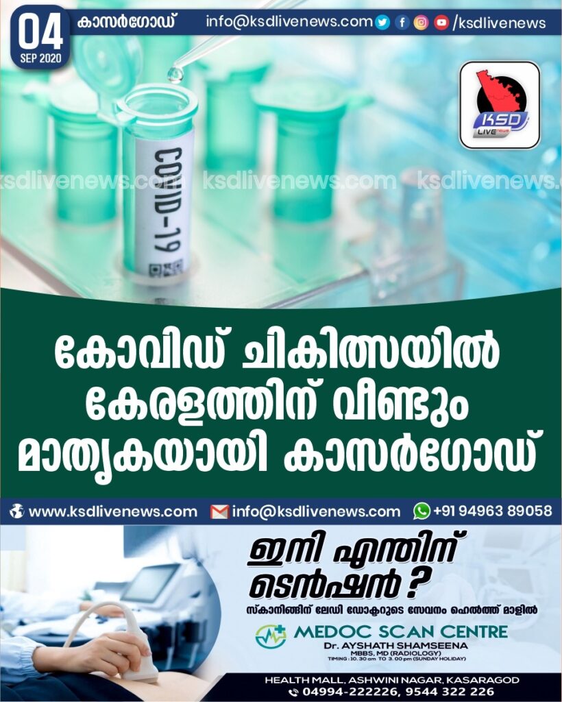 കോവിഡ് ചികിത്സയിൽ കേരളത്തിന് വീണ്ടും മാതൃകയായി കാസർഗോഡ്