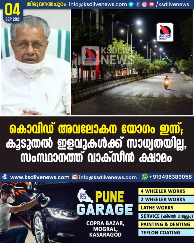 കോവിഡ് അവലോകന യോഗം ഇന്ന്; കൂടുതല് ഇളവുകള്ക്ക് സാധ്യതയില്ല, സംസ്ഥാനത്ത് വാക്സീൻ ക്ഷാമം