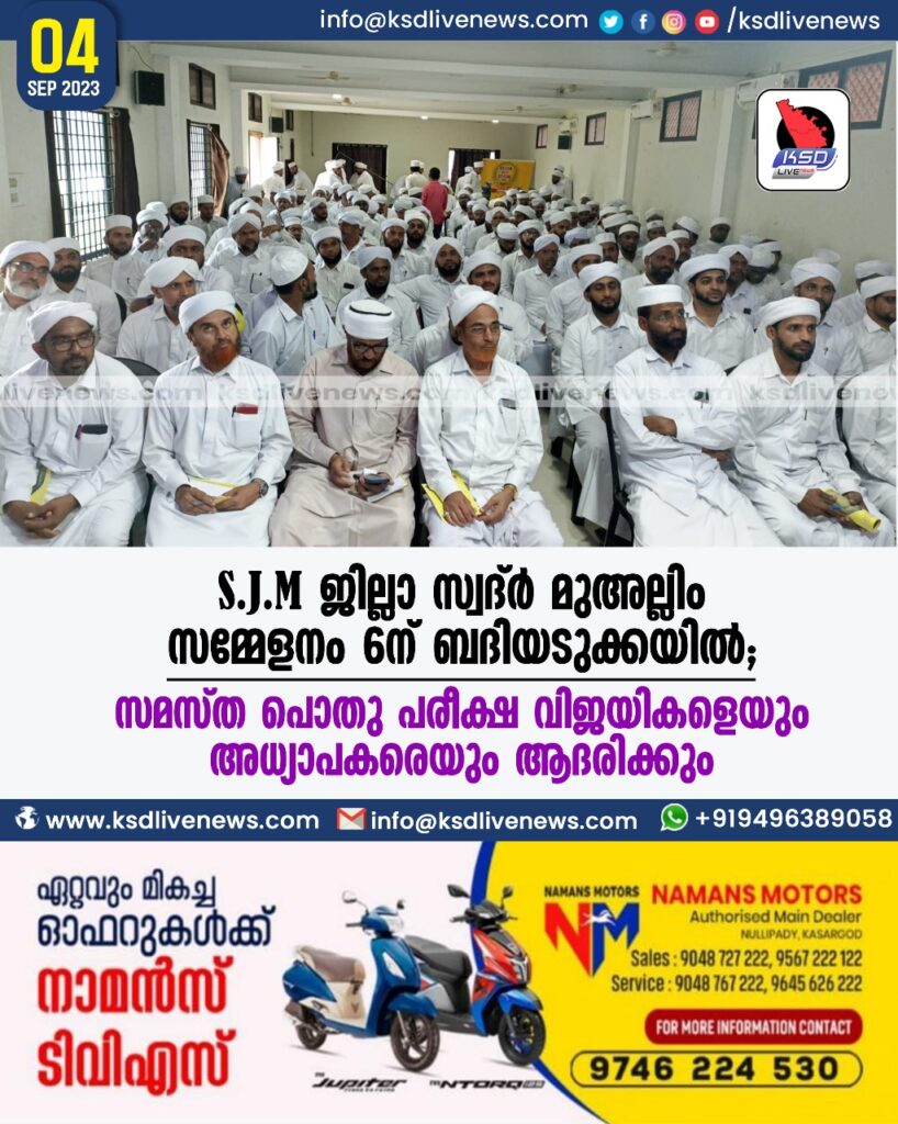 SJ M ജില്ലാ സ്വദ്ർ മുഅല്ലിം സമ്മേളനം 6ന് ബദിയടുക്കയിൽ