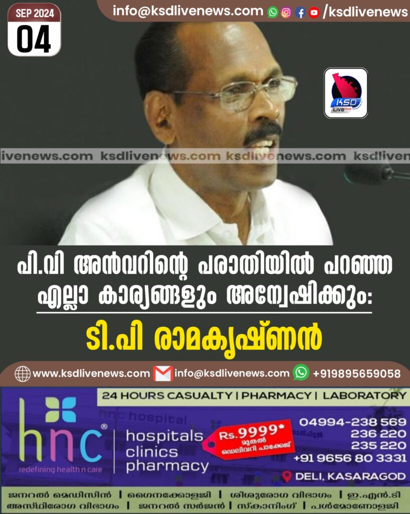പി.വി അന്വറിന്റെ പരാതിയില് പറഞ്ഞ എല്ലാ കാര്യങ്ങളും അന്വേഷിക്കും: ടി.പി രാമകൃഷ്ണന്