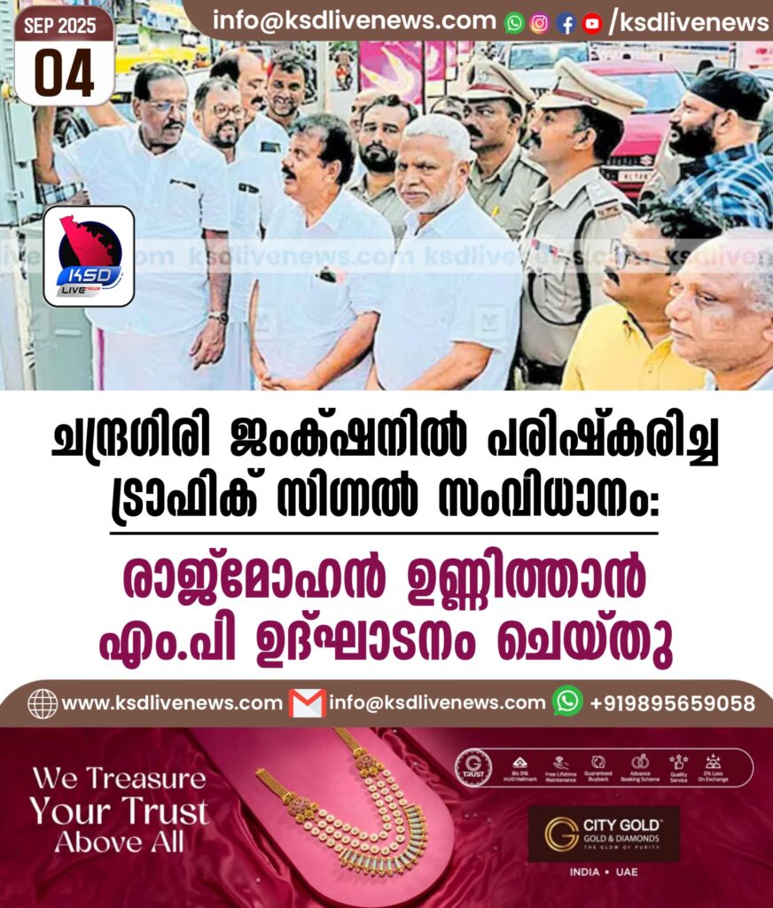ചന്ദ്രഗിരി ജംക‍്ഷനിൽ പരിഷ്കരിച്ച ട്രാഫിക് സിഗ്നൽ സംവിധാനം; രാജ്മോഹൻ ഉണ്ണിത്താൻ എം.പി ഉദ്ഘാടനം ചെയ്തു