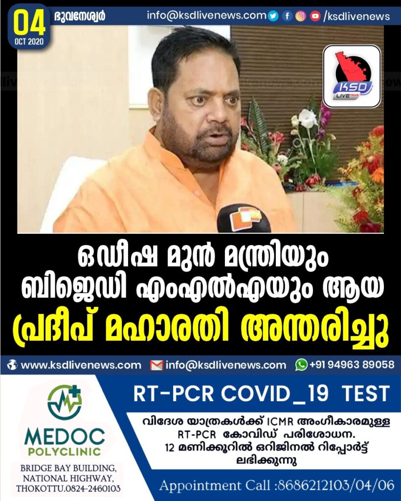 ഒഡീഷ മുൻ മന്ത്രിയും ബിജെഡി എംഎൽഎയും ആയ പ്രദീപ് മഹാരതി അന്തരിച്ചു