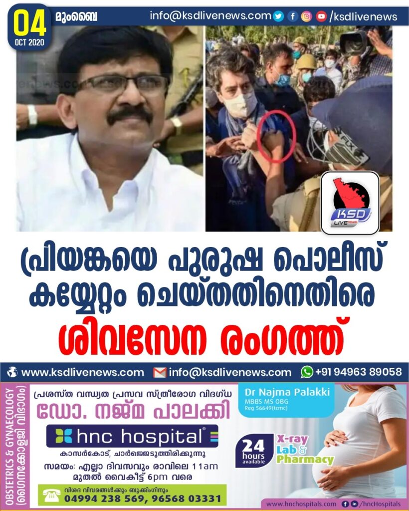 പ്രിയങ്കയെ പുരുഷ പൊലീസ് കയ്യേറ്റം ചെയ്തതിനെതിരെ ശിവസേന രംഗത്ത്