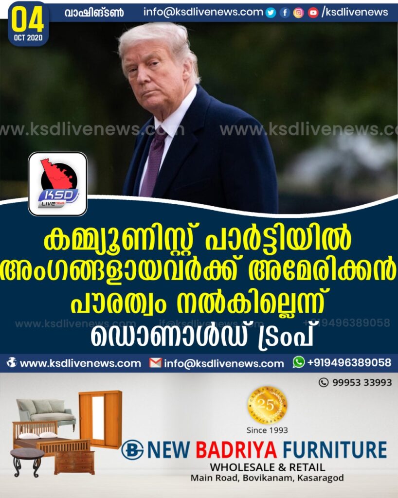 കമ്മ്യൂണിസ്റ്റ് പാർട്ടിയിൽ അംഗങ്ങളായവർക്ക് അമേരിക്കൻ പൗരത്വം നൽകില്ലെന്ന് ഡൊണാൾഡ് ട്രംപ്