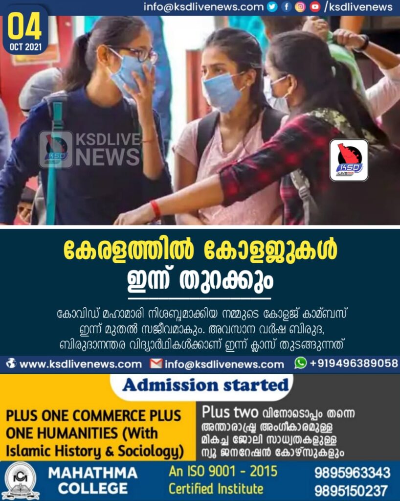 കേരളത്തില്‍ കോളജുകള്‍ ഇന്ന് തുറക്കും