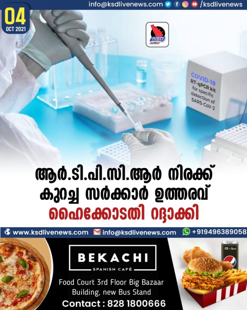 ആര്‍.ടി.പി.സി.ആര്‍ നിരക്ക് കുറച്ച സര്‍ക്കാര്‍ ഉത്തരവ് ഹൈക്കോടതി റദ്ദാക്കി
