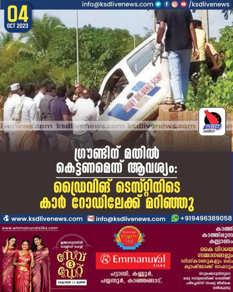 ഗ്രൗണ്ടിന് മതിൽ കെട്ടണമെന്ന് ആവശ്യം : ഡ്രൈവിങ് ടെസ്റ്റിനിടെ കാർ റോഡിലേക്ക് മറിഞ്ഞു