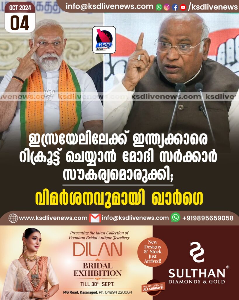 ഇസ്രയേലിലേക്ക് ഇന്ത്യക്കാരെ റിക്രൂട്ട് ചെയ്യാൻ മോദി സർക്കാർ സൗകര്യമൊരുക്കി; വിമർശനവുമായി ഖാർഗെ