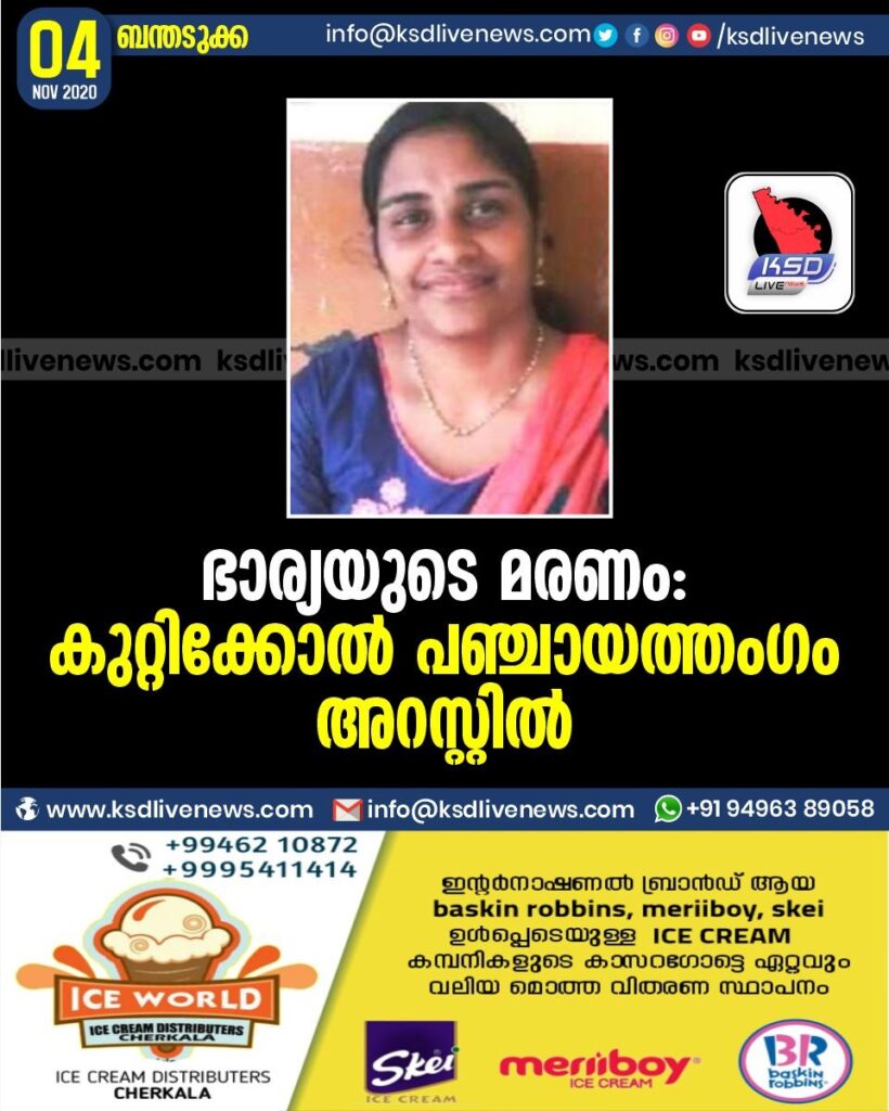 ഭാര്യയുടെ മരണം: കുറ്റിക്കോൽ പഞ്ചായത്തംഗം അറസ്റ്റിൽ