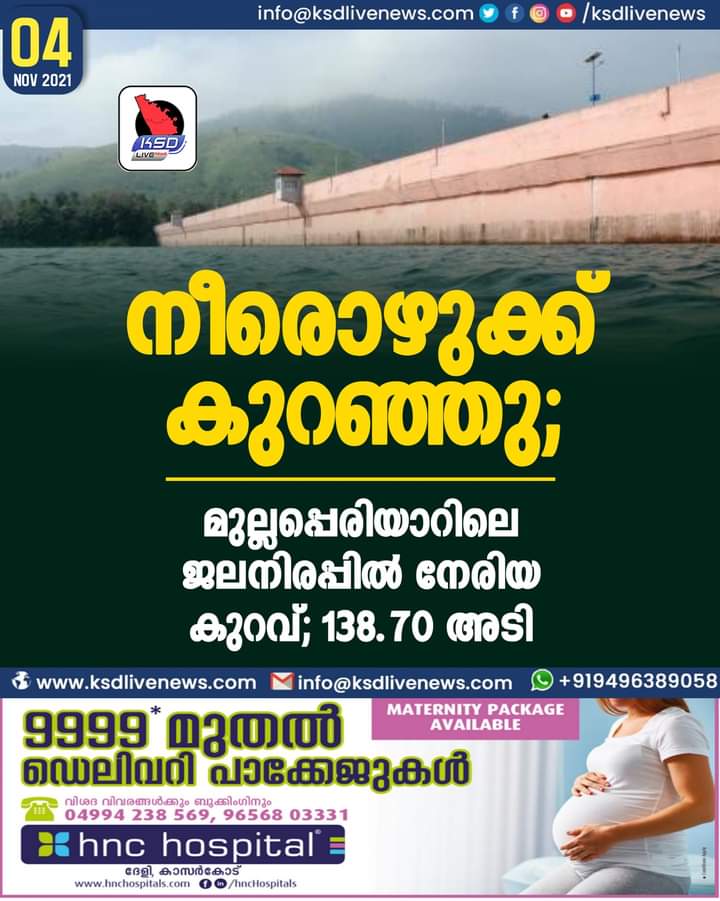 നീരൊഴുക്ക് കുറഞ്ഞു; മുല്ലപ്പെരിയാറിലെ ജലനിരപ്പില്‍ നേരിയ കുറവ്; 138.70 അടി