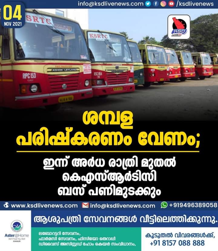 ശമ്പള പരിഷ്‌കരണം വേണം’; ഇന്ന് അര്‍ധരാത്രി മുതല്‍ കെഎസ്‌ആര്‍ടിസി ബസ് പണിമുടക്കും
