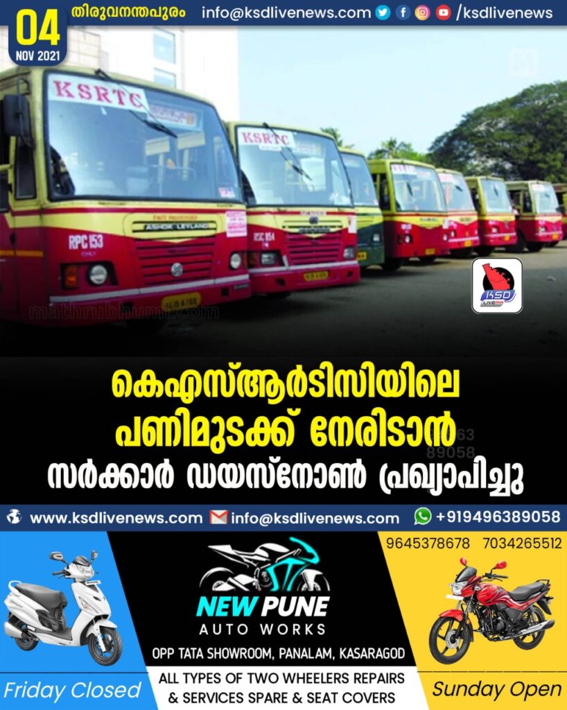 കെഎസ്ആര്ടിസിയിലെ പണിമുടക്ക് നേരിടാന് സര്ക്കാര് ഡയസ്നോണ് പ്രഖ്യാപിച്ചു