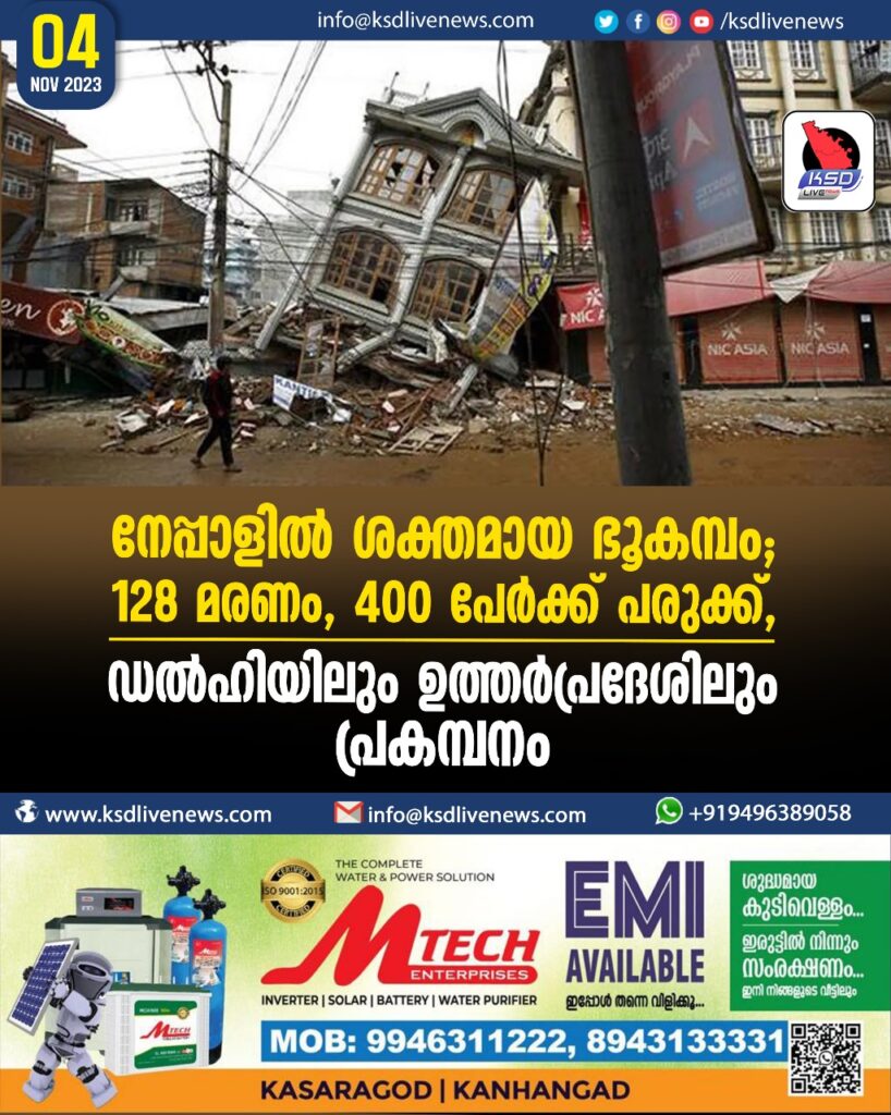 നേപ്പാളിൽ ശക്തമായ ഭൂകമ്പം; 128 മരണം, 400 പേർക്ക് പരുക്ക്, ഡൽഹിയിലും ഉത്തർപ്രദേശിലും പ്രകമ്പനം