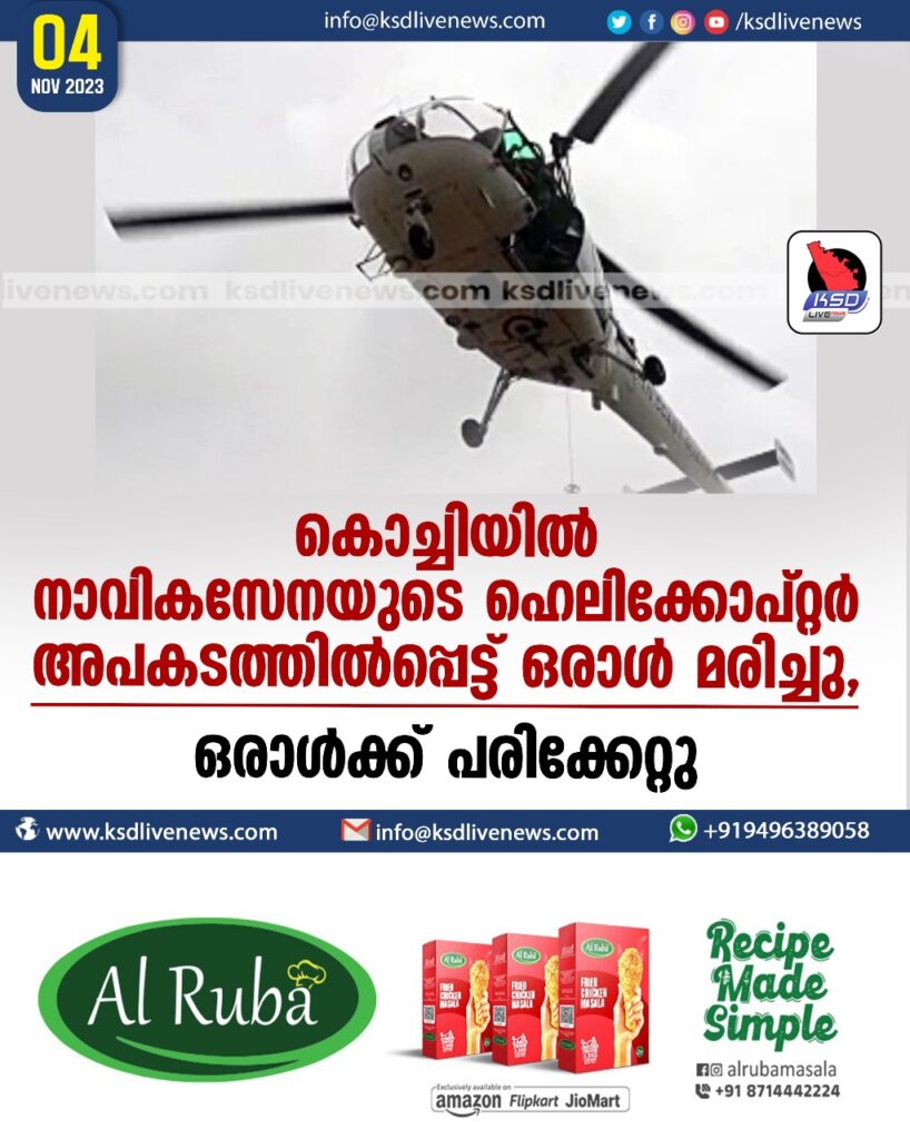 കൊച്ചിയില്‍ നാവികസേനയുടെ ഹെലിക്കോപ്റ്റര്‍ അപകടത്തില്‍പ്പെട്ട് ഒരാള്‍ മരിച്ചു, ഒരാള്‍ക്ക് പരിക്കേറ്റു