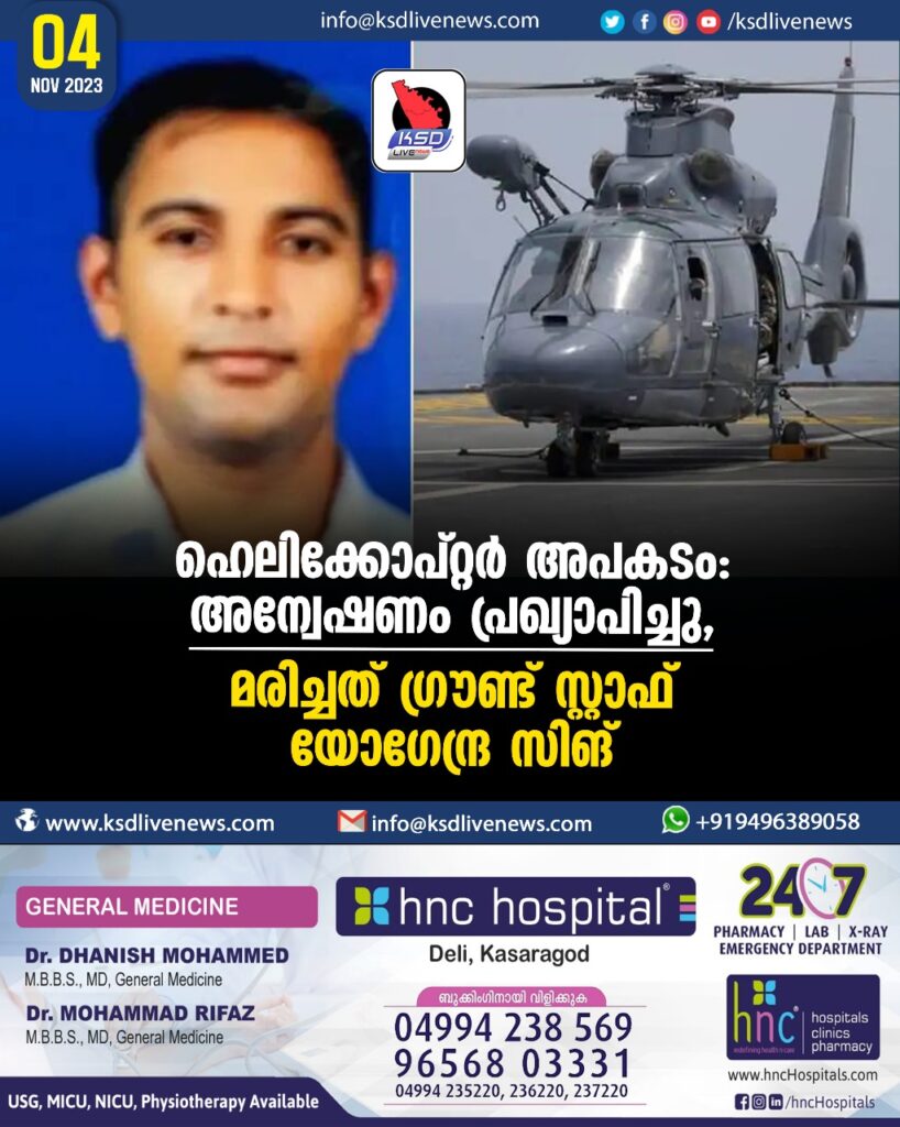 ഹെലിക്കോപ്റ്റര് അപകടം: അന്വേഷണം പ്രഖ്യാപിച്ചു, മരിച്ചത് ഗ്രൗണ്ട്സ്റ്റാഫ് യോഗേന്ദ്ര സിങ്