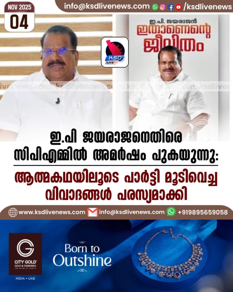 ഇപി ജയരാജനെതിരെ സിപിഎമ്മിൽ അമര്ഷം പുകയുന്നു; ‘ആത്മകഥയിലൂടെ പാര്ട്ടി മൂടിവെച്ച വിവാദങ്ങള് പരസ്യമാക്കി